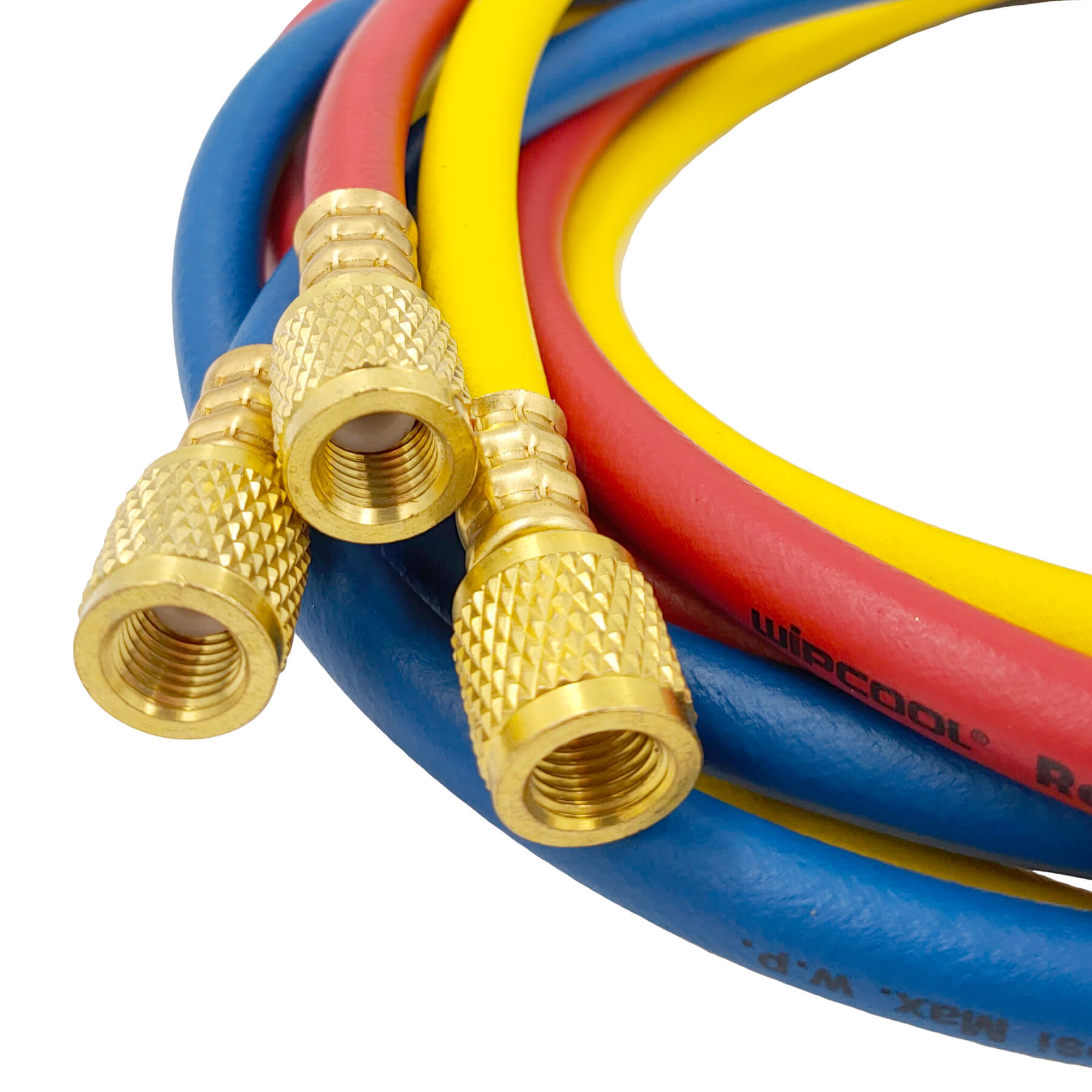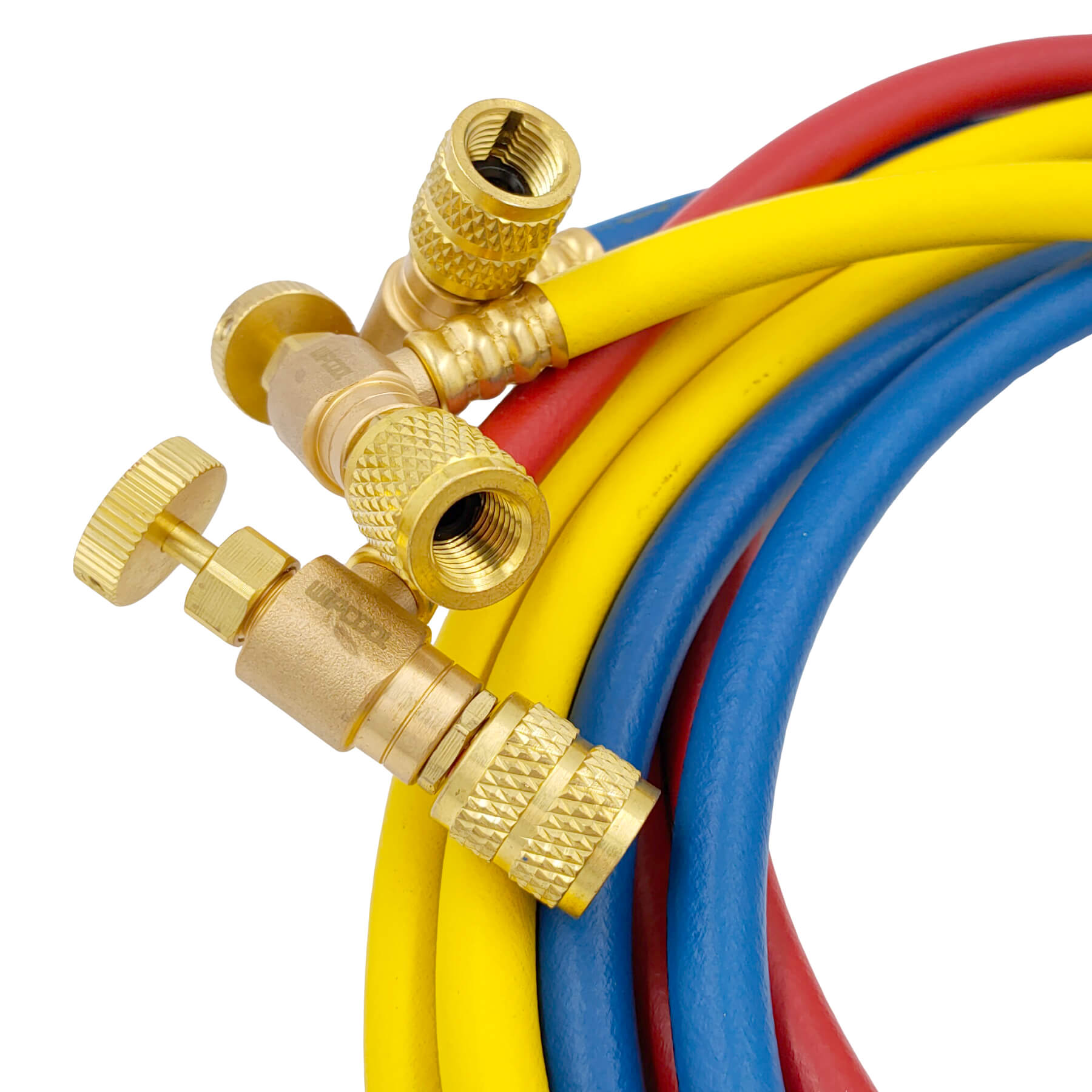 - Заправочные шланги с сервисным вентилем для работы с фреонами: R22,R134A,R410A,R407C;