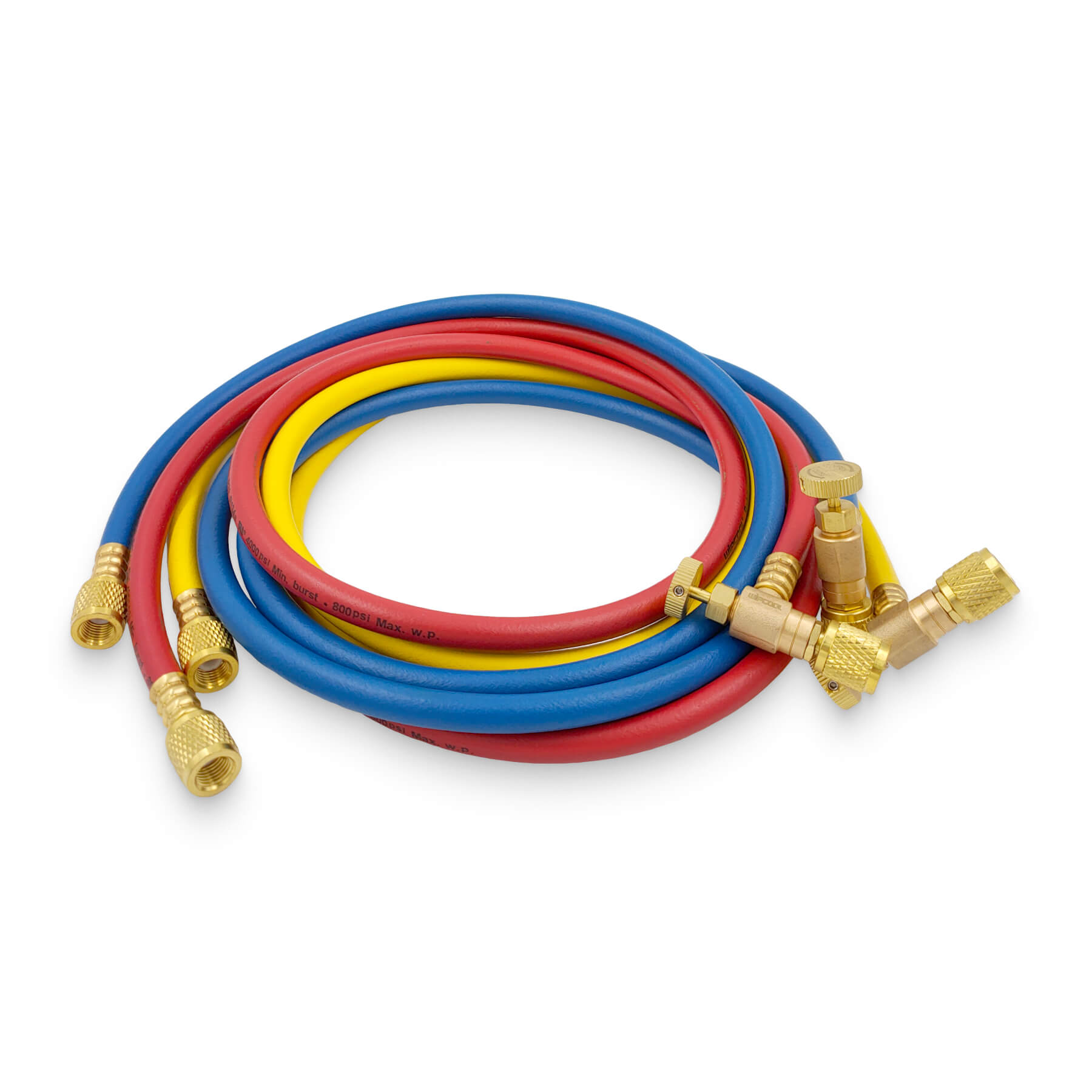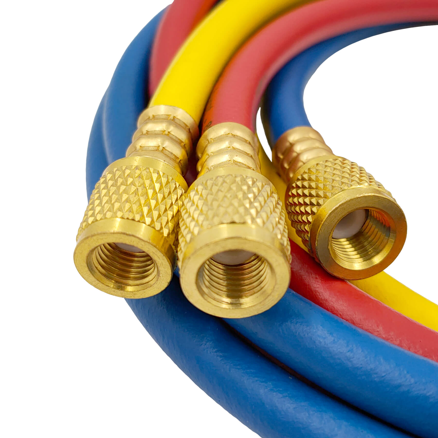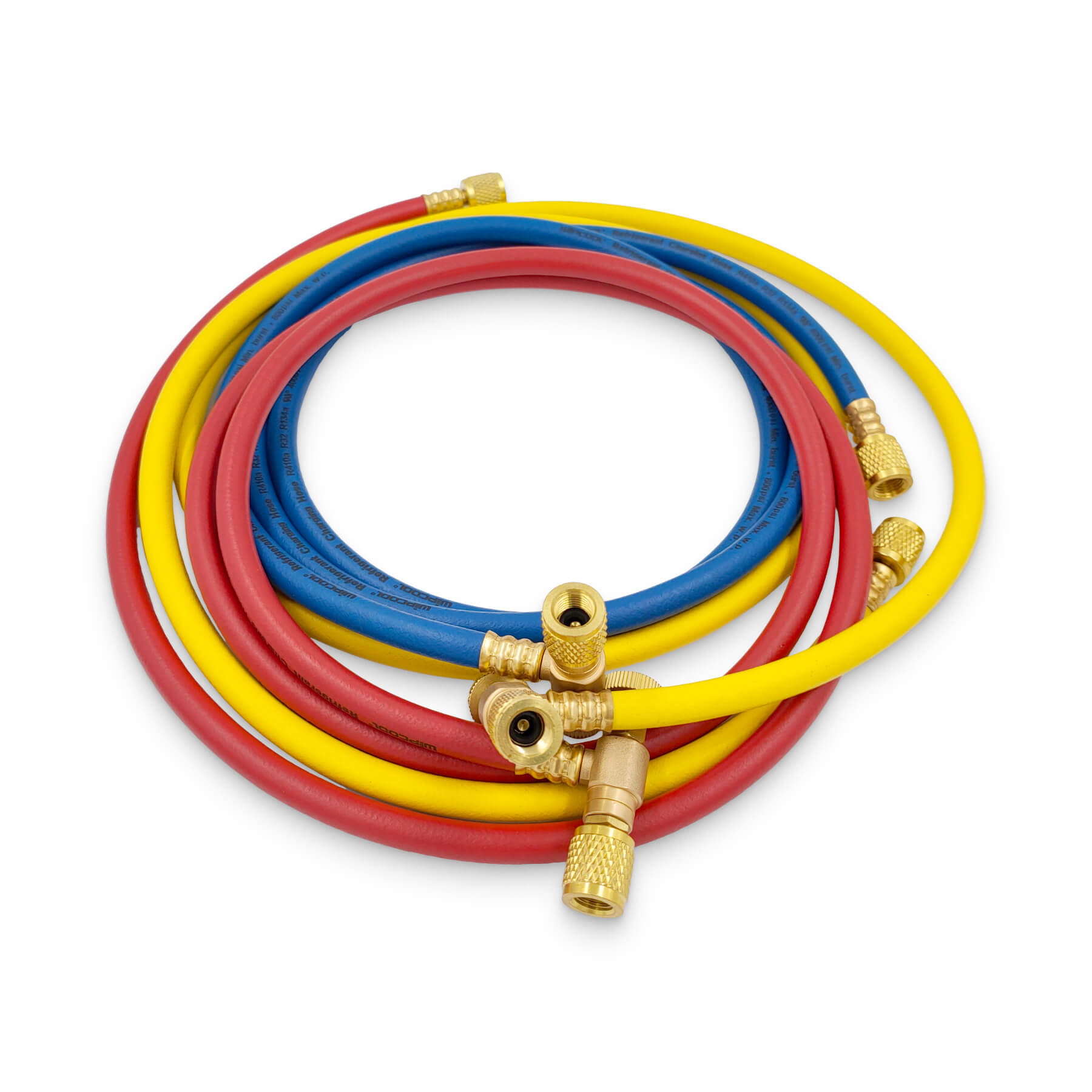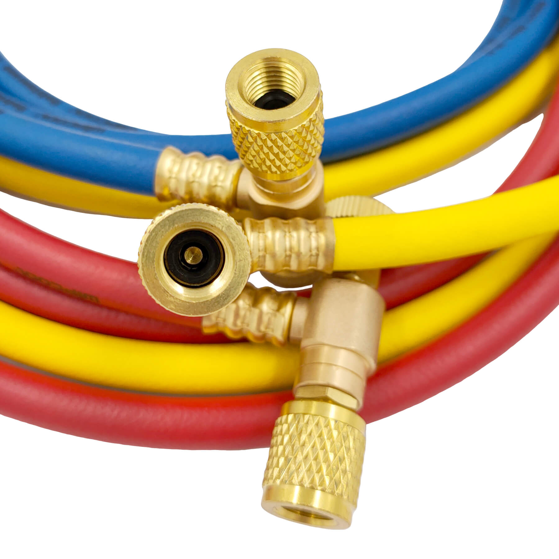 - Заправочные шланги с сервисным вентилем для работы с фреонами: R22,R134A,R410A,R407C;