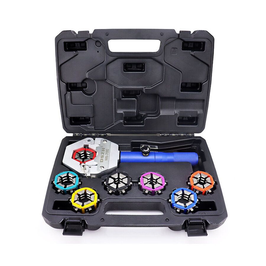 DSZH WK-700- это надёжное гидромеханическое устройство опрессовывающее колпаки (гильзы) для создания неразъёмного соединения шланг-фитинг. Кримпер позволяет получить надёжный и единообразный обжим как алюминиевых, так и стальных колпаков. В комплекте кримпера включены обжимные вставки предназначенные для создания соединений различных диаметров.