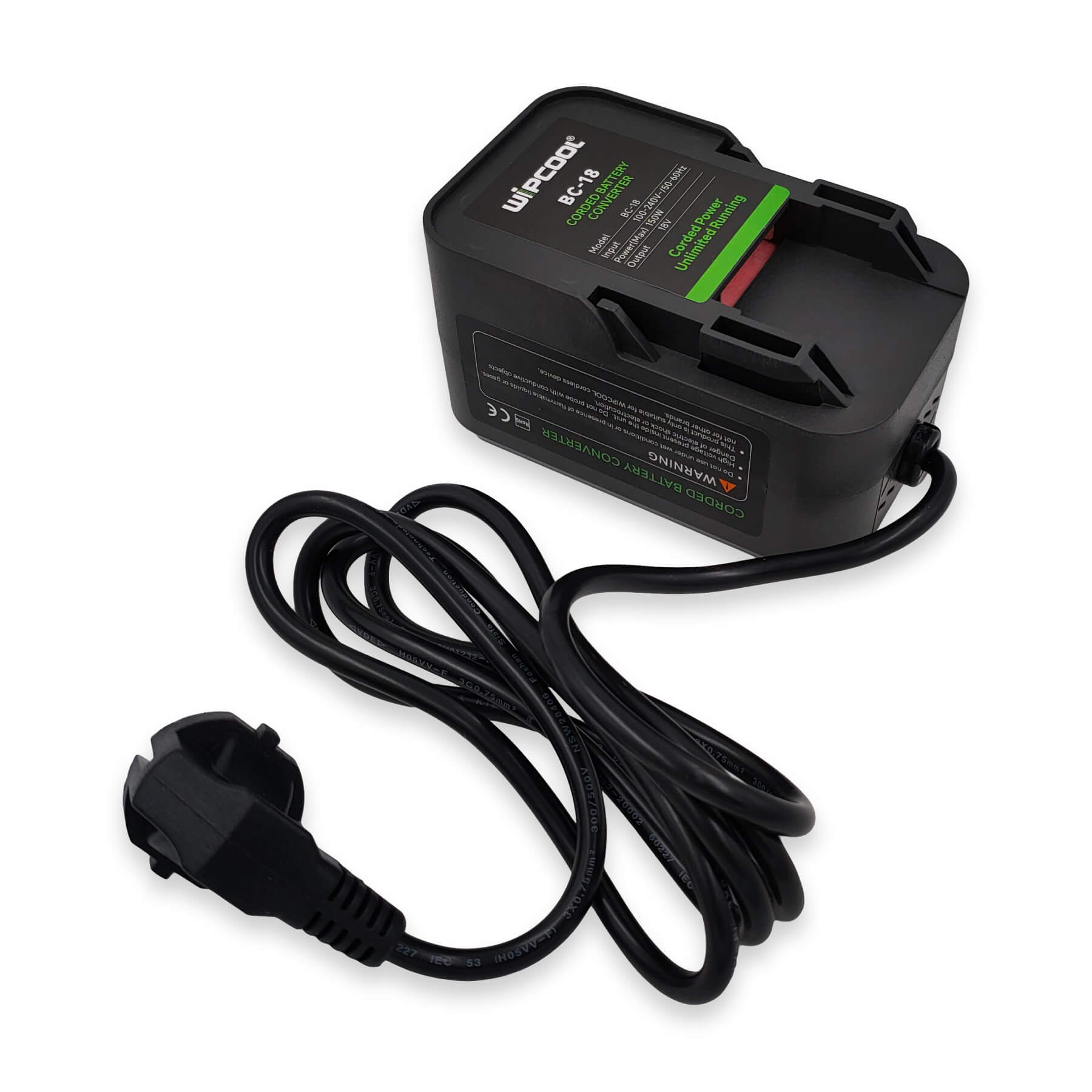 Преобразователь WIPCOOL BC-18 предназначен для работы с мойками WIPCOOL C10B и C10BW, обеспечивая их питание от стандартной сети 220 В. Устройство позволяет подключать мойку напрямую к электрической сети без использования аккумулятора, что удобно при работе в помещениях или на объектах с доступом к электропитанию.