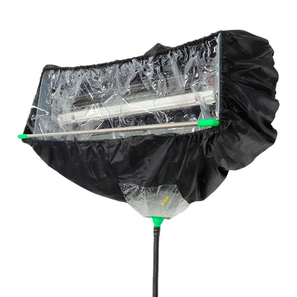 Чехол для чистки кондиционера CSC-1 Split сшит из высококачественной жаккардовой ткани Оксфорд, высококачественного водонепроницаемого материала, мягкого и долговечного. Выдвижной кронштейн легко адаптируется к различным размерам и моделям настенных кондиционеров, а также оснащен прозрачной водяной завесой и водоотводчиком, что позволяет эффективно предотвращать разбрызгивание жидкости во время процесса очистки.