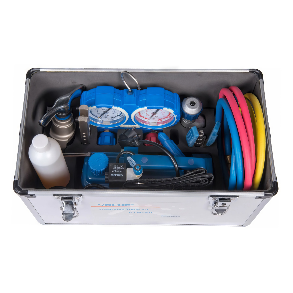 Универсальный набор инструментов Value VTB-5A. В алюминиевом кейсе: вакуумный насос, коллектор, шланги, вальцовка, труборез, труборасширитель, риммер.