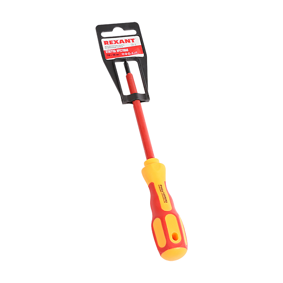 Отвертка крестовая диэлектрическая REXANT предназначена для электромонтажных работ, монтажа/демонтажа крепежных соединений. Шлиц: PH0; Длина: 100 мм.