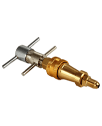 - Вентиль. Позволяет заменить ниппель в системе под давлением без потери хладагента или ускорить перезаправку системы воздушного кондиционирования за счет удаления ниппеля и установки его обратно после завершения заправки.