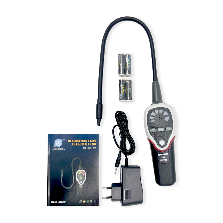 Течеискатель DSZH RLD-382P - это устройство предназначенное для обнаружения утечек хладагента при помощи электронного полупроводникового датчика. Для поиска утечек фреона: R-12, R-22, R-134, R-404, R-407, R-410, R-507 и других на основе галогенов.