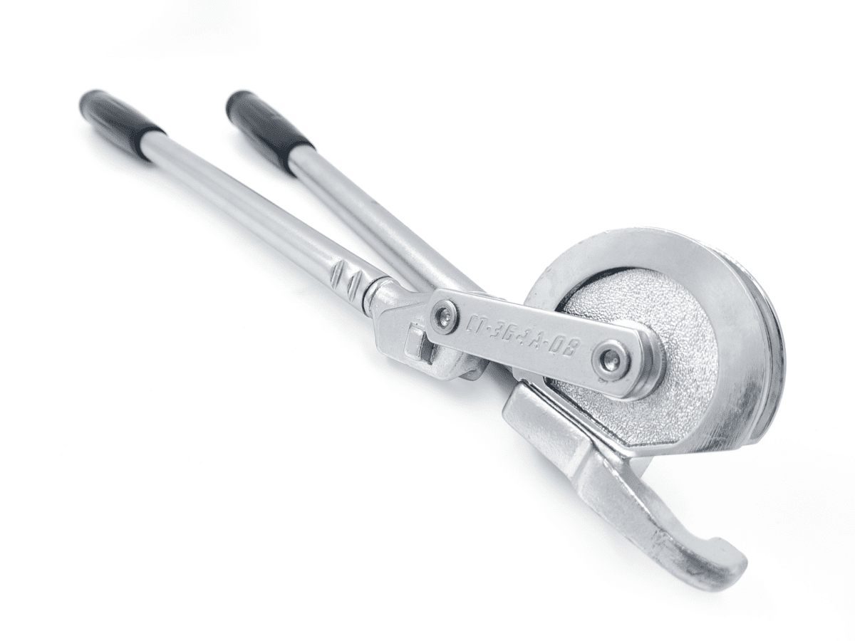 Устройство элементарно: диск с выемкой, в которую укладывается труба соответствующего диаметра; крючок-упор, в котором фиксируется край трубы; рычаг с аналогичным упором. На диск нанесена разметка, по которой несложно отследить необходимый угол. Максимальный изгиб 180 градусов, то есть полный оборот вокруг диска. Давлением на рычаг, увеличивающий прилагаемую силу многократно, мастер добивается сгиба трубки.