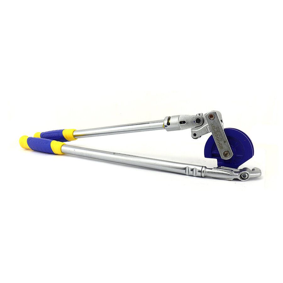 Высокопрочный алюминиевый сплав, используемый при изготовлении трубогиба, при небольшом весе обеспечивает большой срок службы, повышает качество работы, а широкие ручки с противоскользящими накладками делают её безопаснее.
