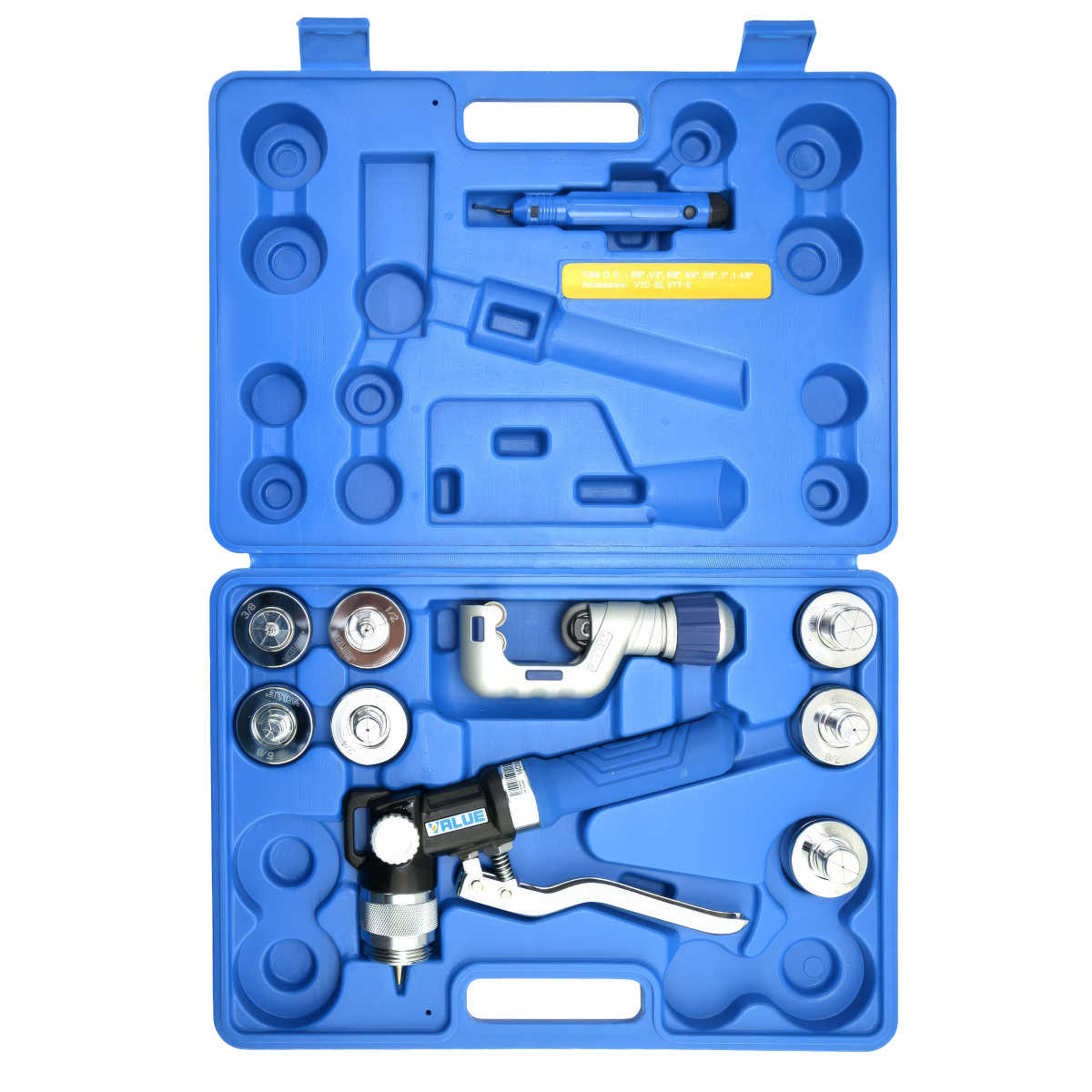 Труборасширитель гидравлический Value VHE 29A предназначен для расширения дюймовых труб, в комплекте насадки для расширения труб диаметром 3/8", 1/2", 5/8", 3/4", 7/8", 1", 1 1/8". Поставляется в пластиковом кейсе.