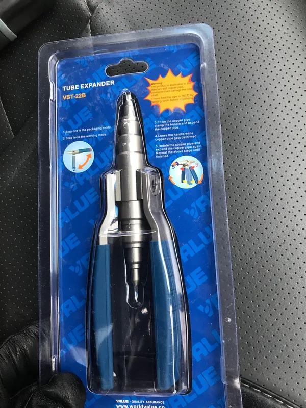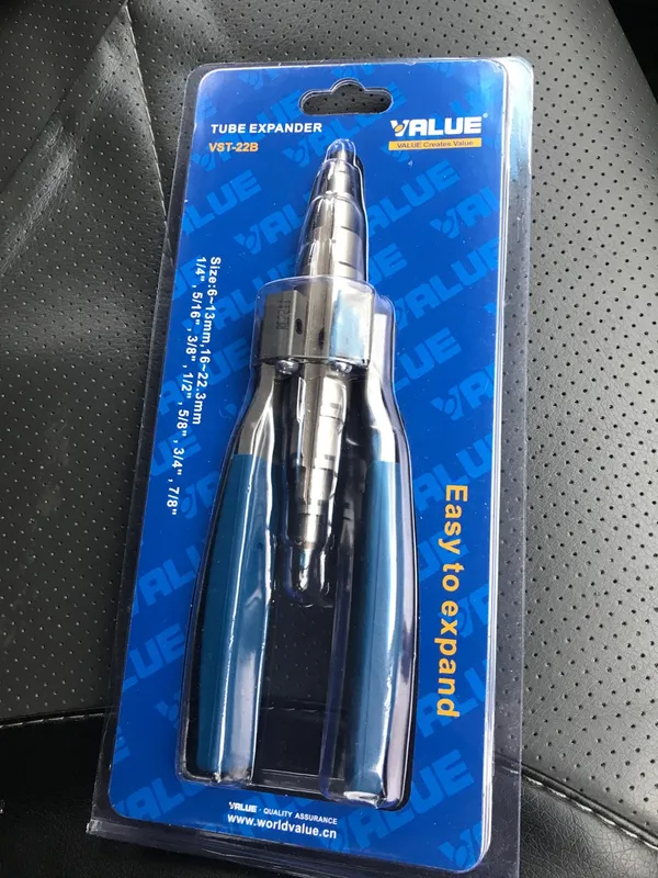 Компактный труборасширитель VALUE VST-22B – холодильный инструмент, фирмы Value. Труборасширитель серии VST идеально подойдет для расширения медных и латунных труб. Небольшой по размерам, благодаря простой конструкции и специальным насадкам, поможет произвести развальцовку труб, подготовив ее к пайке. Подходит для труб диаметром от 1/4 до 7/8 (1/4", 5/16", 3/8", 1/2", 5/8", 3/4", 7/8". Подходит для самой маленькой трубы диаметром 6 мм.)