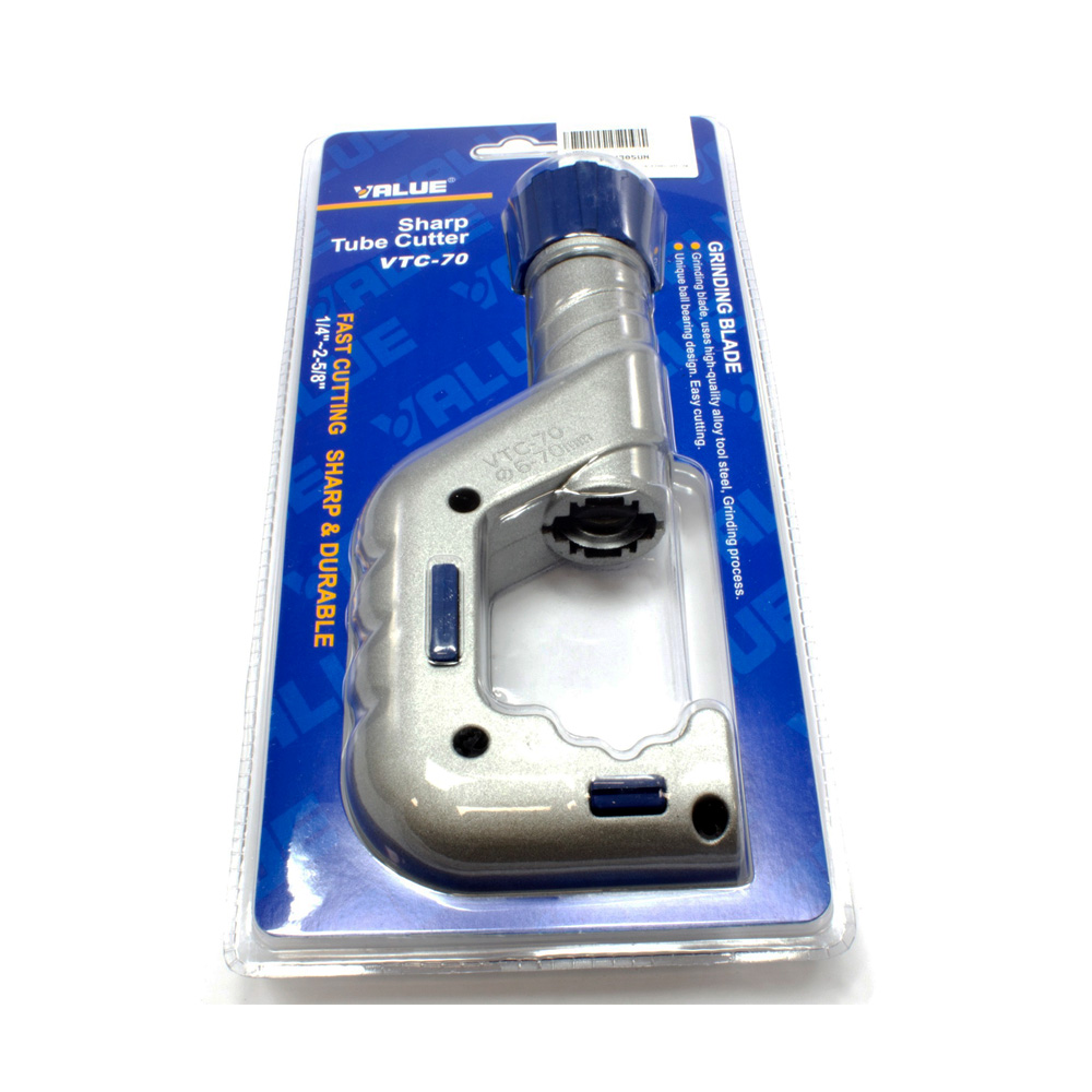 Профессиональный труборез Value VTC-70 предназначен для точной резки медных и алюминиевых труб как в дюймовой, так и в метрической системе. Инструмент обеспечивает чистый, ровный срез без деформации труб, благодаря прочному корпусу и высококачественному режущему элементу.