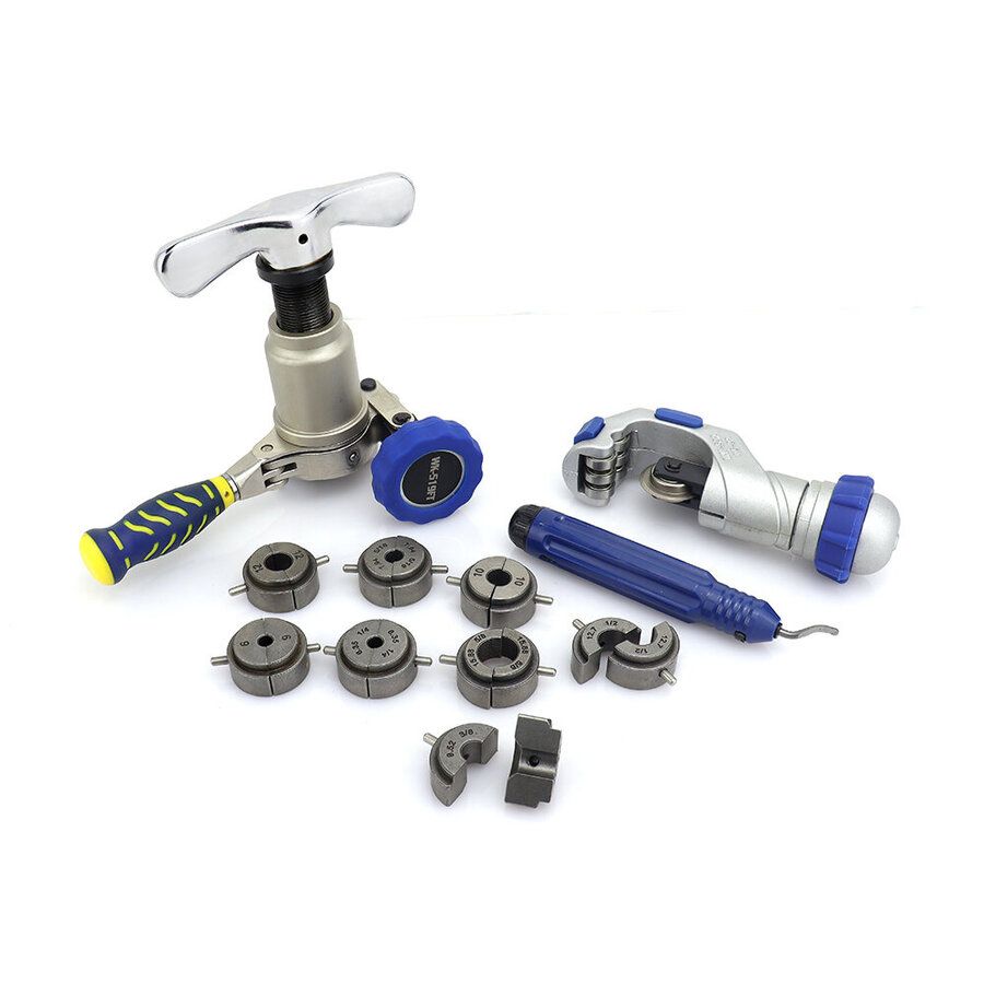 Развальцовка DSZH WK-519FT-L для медных, алюминиевых труб с ограничителем подачи трубы - это инструмент холодильщиков и монтажников по кондиционерам для изменения формы медных труб, их сгибания.