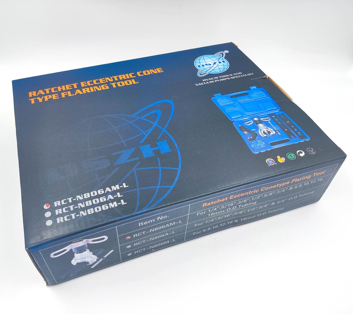 Вальцовка эксцентриковая с реверсом и с трещоткой DSZH RCT-N806 AM-L является универсальным инструментом, предназначенным для развальцовки дюймовых и метрических медных и алюминиевых труб диаметром: 1/4", 5/16", 3/8", 1/2", 5/8", 3/4" и от 6 мм до 19 мм.