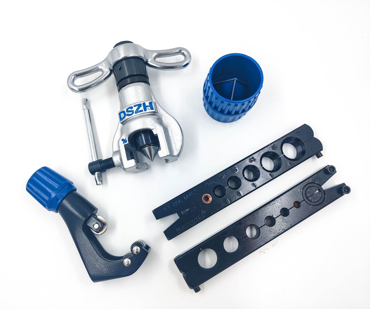 Универсальная вальцовка с трещоткой и эксцентриком, для дюймовых и метрических медных и алюминиевых труб диаметром: 1/4", 5/16", 3/8", 1/2", 5/8", 3/4" и от 6 мм до 19 мм.