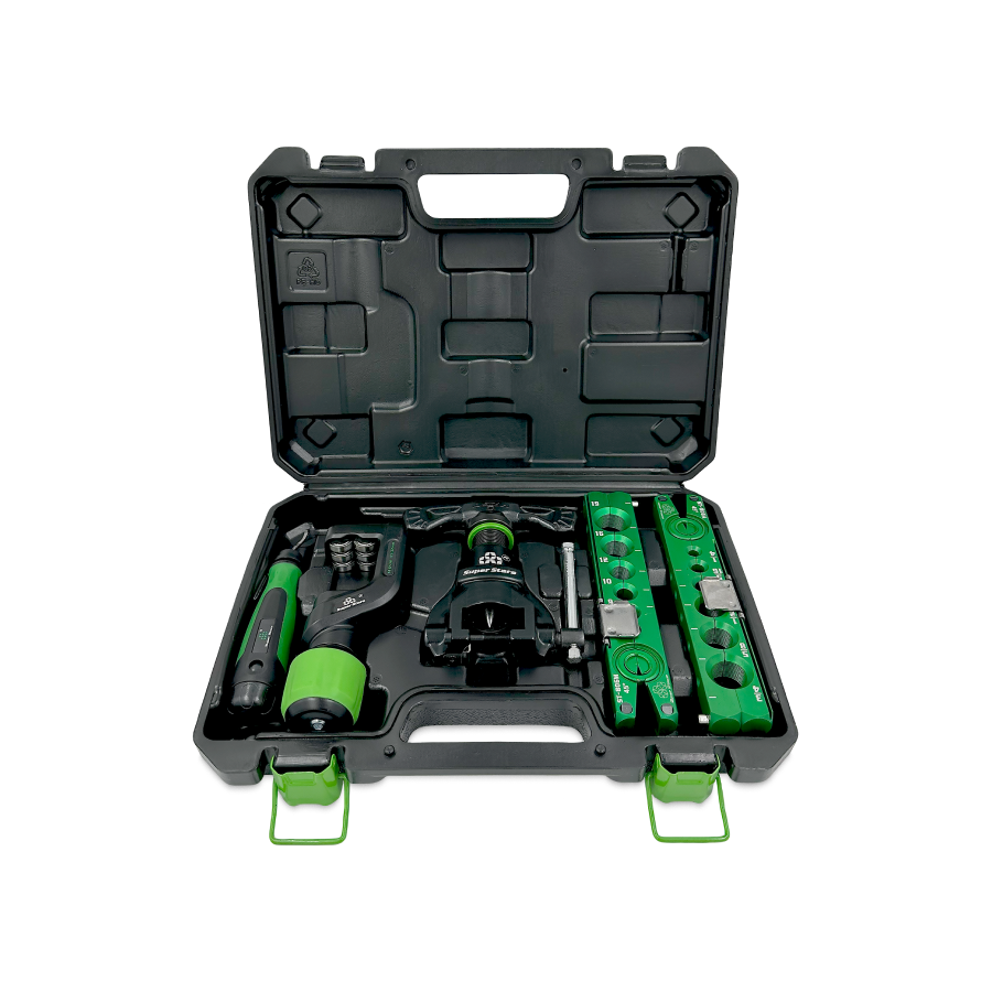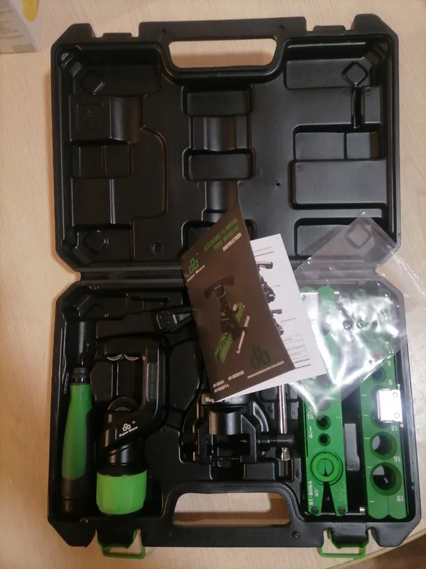 Развальцовка для медных, алюминиевых труб, облегченная, с ограничителем подачи трубы. Вальцовка ST-806FT-L подходит для медных труб диаметром: 1/4", 5/16", 3/8", 1/2", 5/8", 3/4" и 6, 8, 10, 12, 16, 19 миллиметров. Проста в использовании и имеет точный результат развальцовки, благодаря фиксаторам и надежным креплениям.