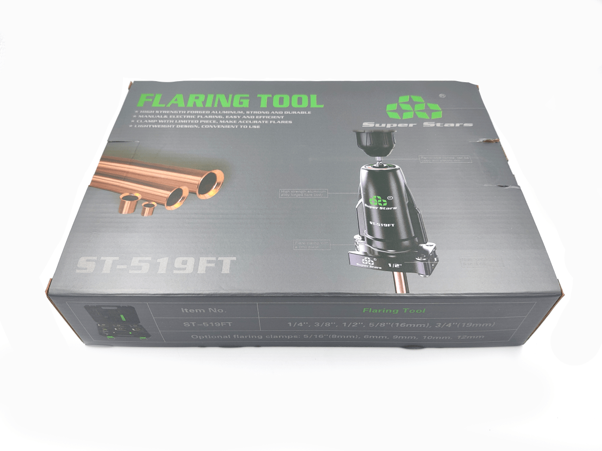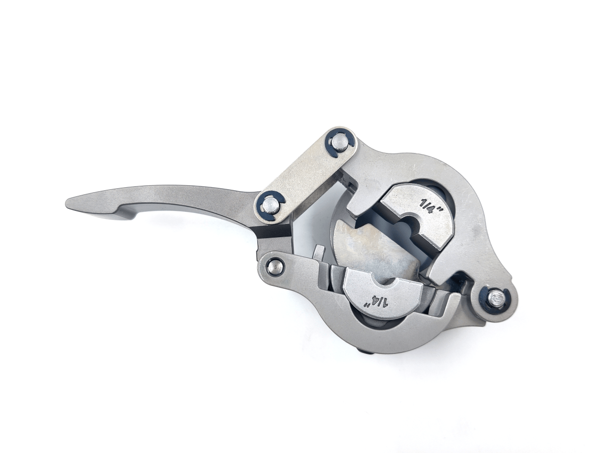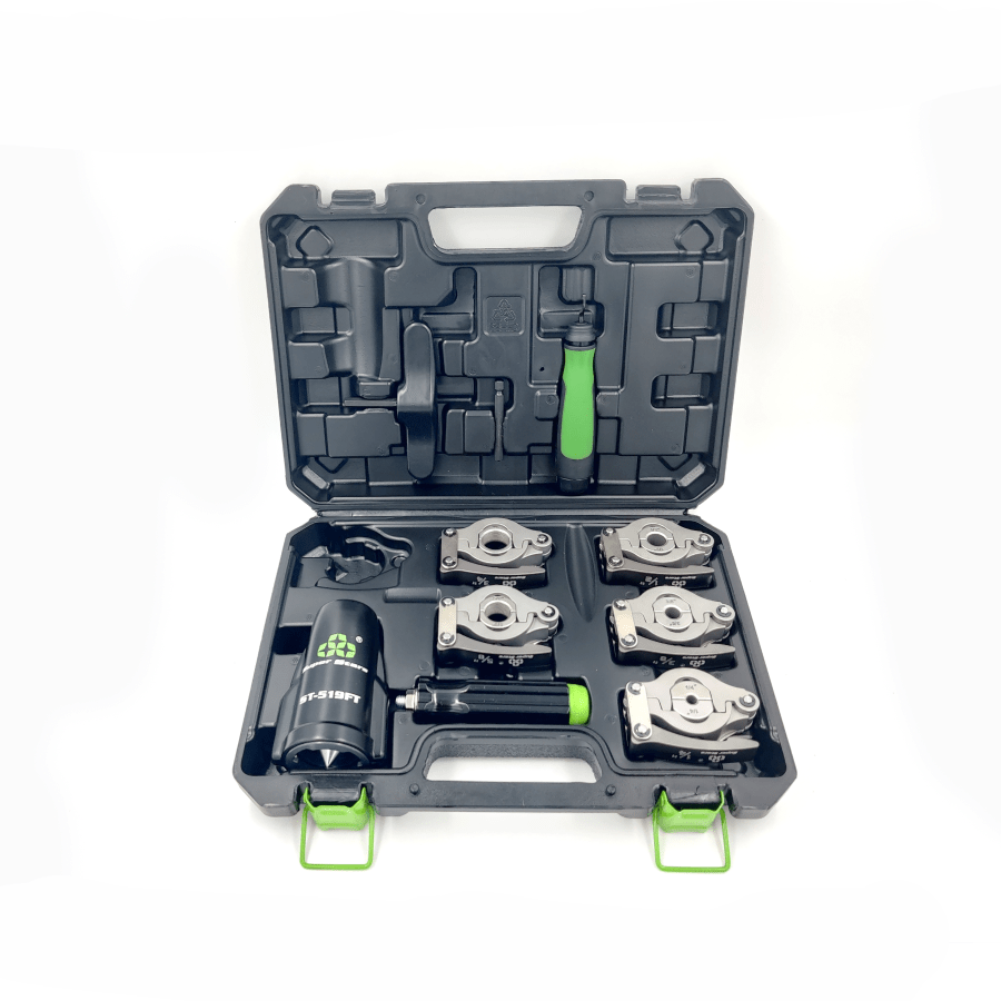 Универсальная развальцовка с эксцентриком, облегченная, со сменными насадками для дюймовых медных и алюминиевых труб диаметром: 1/4", 3/8", 1/2", 5/8" (16mm), 3/4" (19mm).
