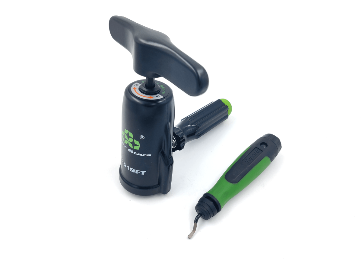 В комплекте 5 насадок для труб разных диаметров, ребристая ручка-держатель, риммер-карандаш, кейс.