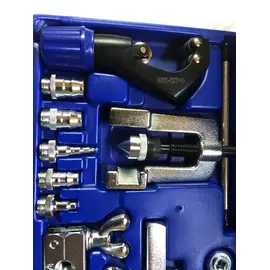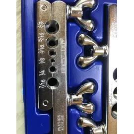 Набор для вальцевания и расширения дюймовых медных и алюминиевых труб диаметром: 1/4", 5/16", 3/8", 1/2", 5/8", 3/4". Поставляется в кейсе. В комплекте также 2 плашки и 5 насадок для труборасширения: 3/16", 1/4", 5/16", 3/8",1/2", 5/8", 3/4".