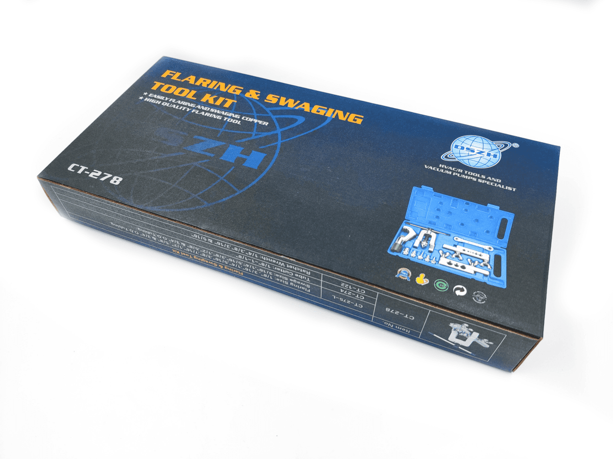 Набор DSZH CT-278L представляет собой универсальный инструмент для развальцовки и обработки труб из различных материалов, таких как медь, латунь и алюминий. Он предназначен для изменения диаметра труб с размерами от 1/8" - 3/4" дюйма.