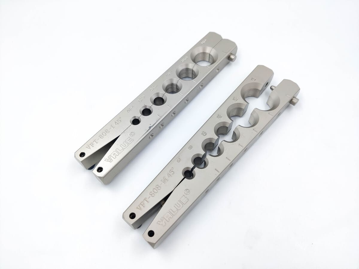 Вальцовка VFT-808-MIS представляет собой набор для вальцевания и резки дюймовых медных и алюминиевых труб диаметром: (1/4", 5/16", 3/8", 1/2", 5/8", 3/4"). Поставляется в пластиковом кейсе с плашкой 1/4" - 3/4" и труборезом VTC-28B.