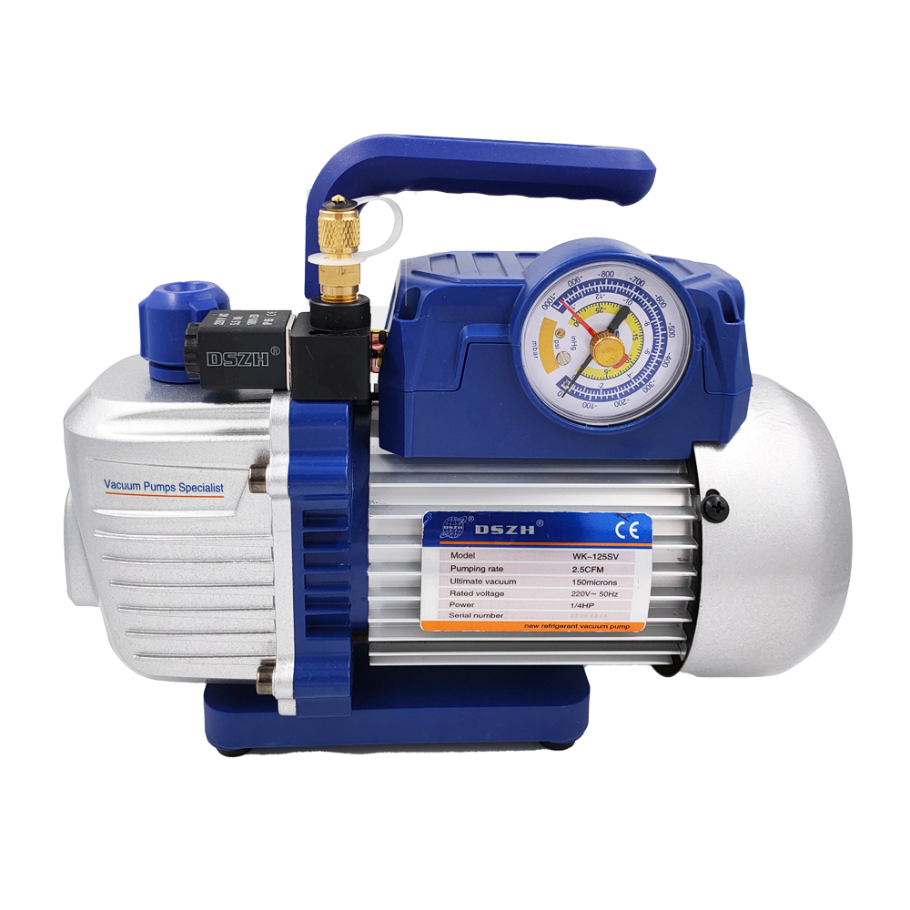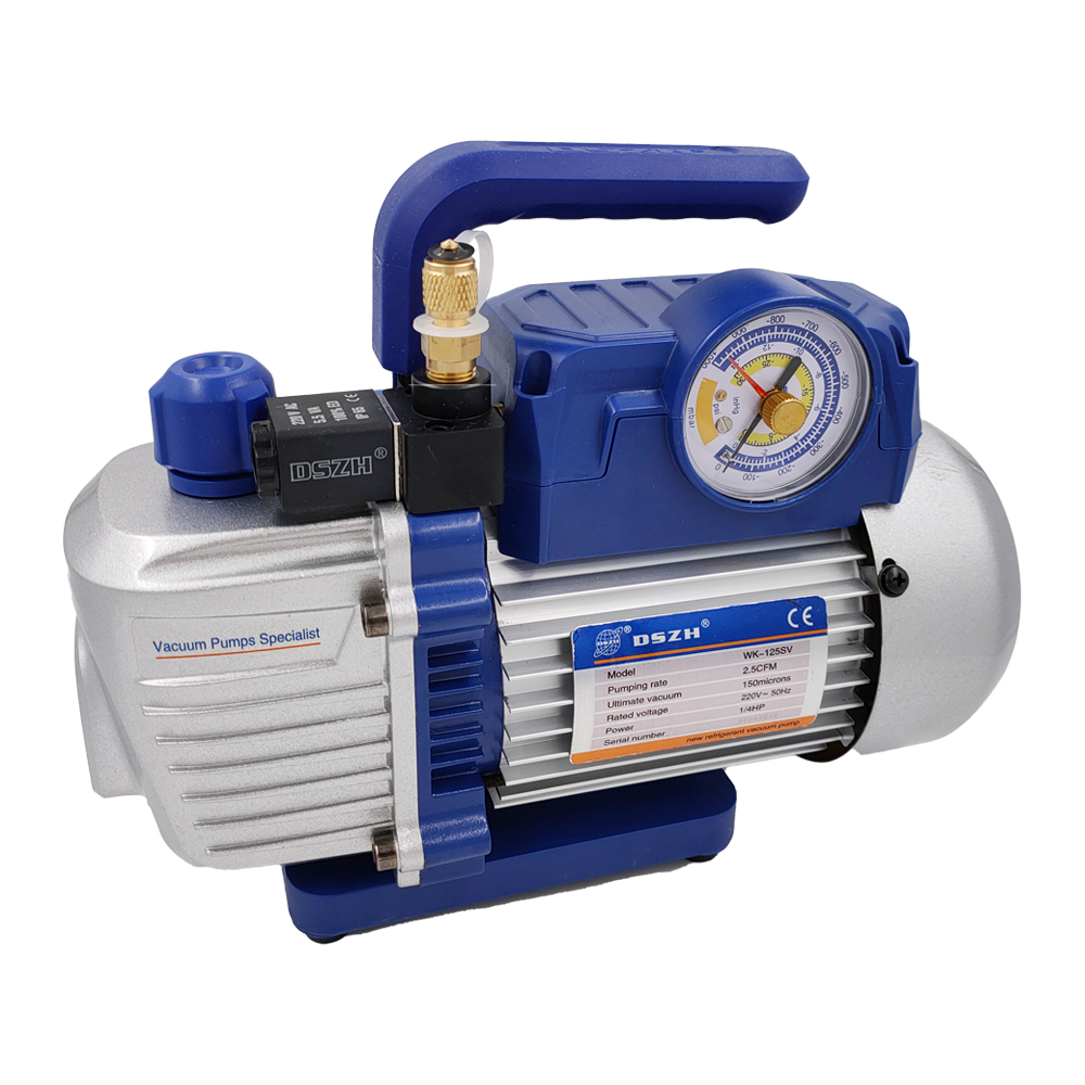 Вакуумный насос DSZH WK-125SV - это надёжный агрегат, имеющий небольшую массу, удобную ручку для переноски, высокую скорость откачки, низкое энергопотребление, встроенную тепловую защиту электродвигателя. Оснащен манометром.