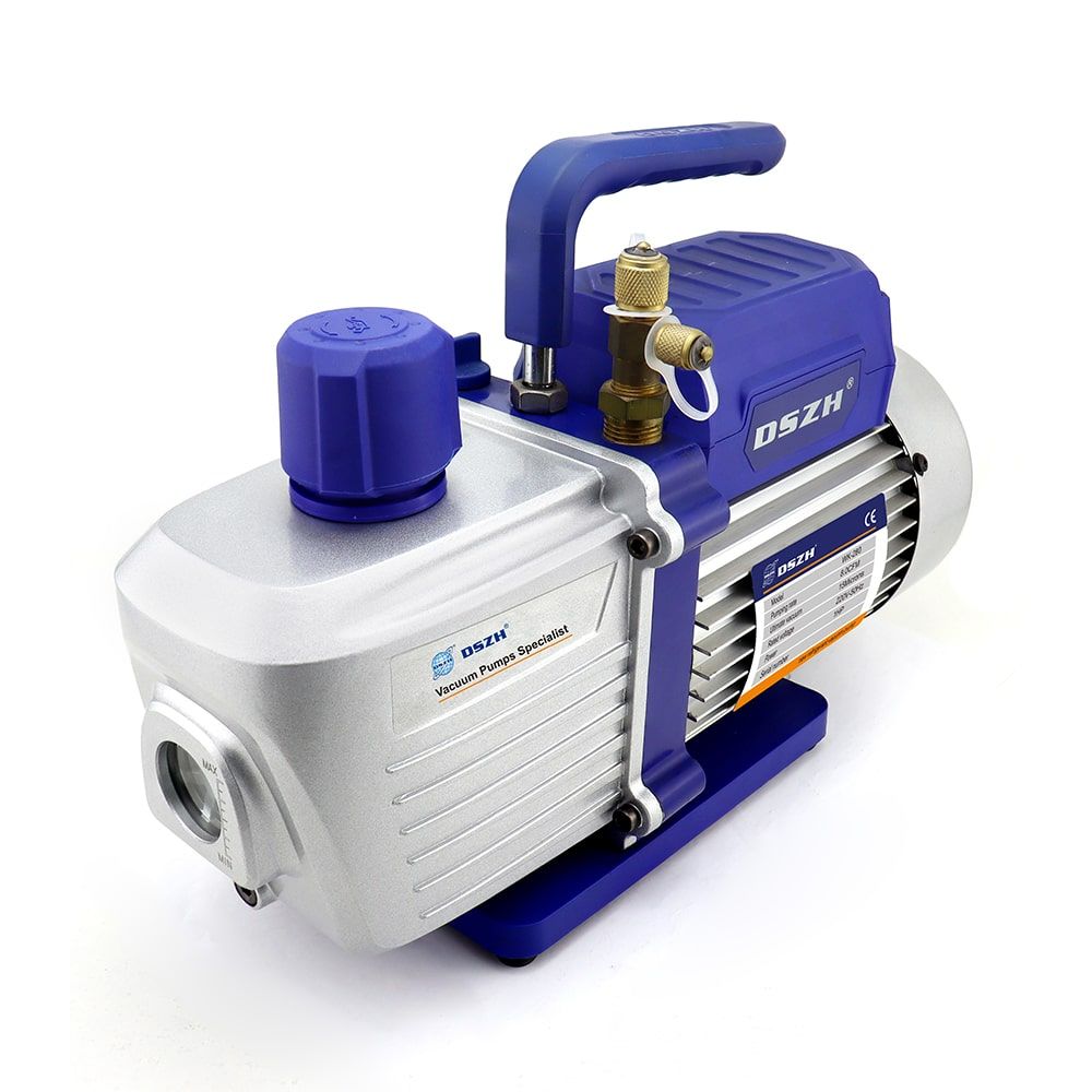 Пластинчато-роторный вакуумный насос со скользящими лопастями предназначен для удаления воздуха из герметично-спаянной холодильной системы для последующей заправки хладагентом. Однофазное напряжение питания 220В/50Гц.