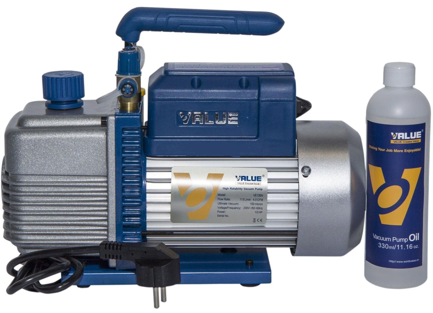 Вакуумный насос Value VE135N производительность 100 л/мин. Двигатель мощностью 245Вт обеспечивает высокую скорость откачки, низкий уровень шума во время работы.