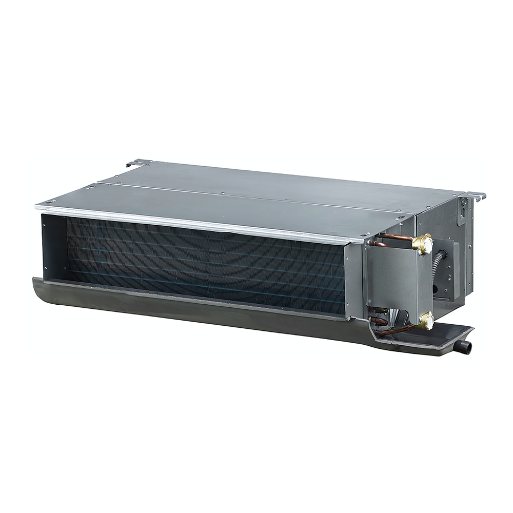 Фанкойлы марки General Climate из серии GDU-W представляют собой двухтрубные канальные устройства, которые отличаются современным дизайном и компактными размерами. Аппараты обладают удобной особенностью — возможностью быстрой смены стороны присоединения трубопровода непосредственно на месте в процессе монтажа. Устанавливаются модели в горизонтальном положении и поставляются в комплекте с пылеулавливающими фильтрами.