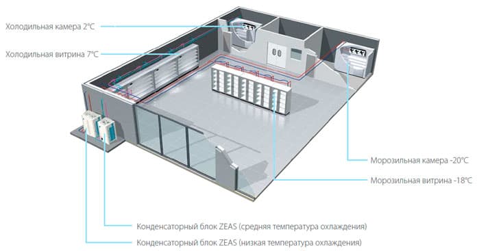 Новые конденсаторные блоки технологического охлаждения (температура кипения хладагента от -40°С до +10°С) ZEAS подходят для помещений с переменной тепловой нагрузкой и требованиями к более высокой энергоэффективности по сравнению с традиционными решениями, таких как супермаркеты, камеры быстрого охлаждения и заморозки, холодные склады, рестораны и магазины, автозаправочные станции. Достоинством блоков ZEAS являются очень компактные размеры и низкий уровень шума при работе, что позволяет их установку практически в любом доступном месте.