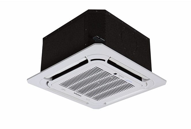 Кассетный блок Dantex RK-M18Q4-A3N в помещениях с подвесными потолками может стать альтернативой привычным настенным блокам и обеспечить более профессиональное кондиционирование помещения типа небольшого магазина, офиса и другого подобного помещения. Компактная конструкция кассетного блока позволяет его встроить в подвесной потолок.