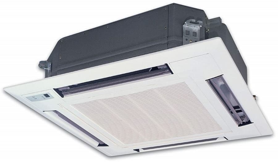 Тип кондиционера Тип кондиционера По своим конструктивным особенностям, способу установки и назначению кондиционеры делятся на несколько типов: оконные, мобильные, настенные, подпотолочные, напольные, универсальные (напольно-потолочные), кассетные, канальные и колонные.} | Кассетный блок VRF-системы |
