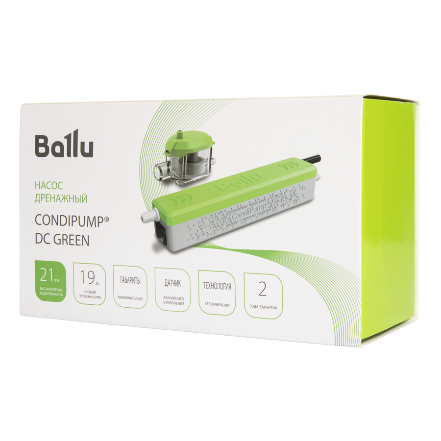 Ballu CondiPump DC Green - проточная дренажная помпа, предназначенная для установки в корпусе внутреннего блока, над потолком, либо в дренажной магистрали. В насосе используется технология ротационной мембраны, которая исключает шум и вибрацию насоса в процессе работы.