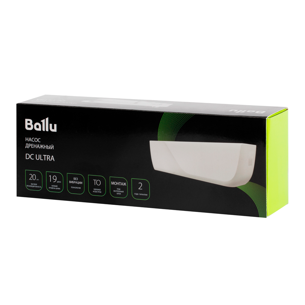 Дренажная помпа Ballu CondiPump DC Ultra представляет собой устройство для отвода конденсата от кондиционеров малой и средней производительности. Устройство имеет эстетичный вид и компактные размеры. Контроль уровня воды осуществляется поплавковым датчиком. Данный тип приборов не требует дополнительных коробов, а дренажная трубка вставляется непосредственно в помпу. Резервуар для слива конденсата может вместить до 80 мл.