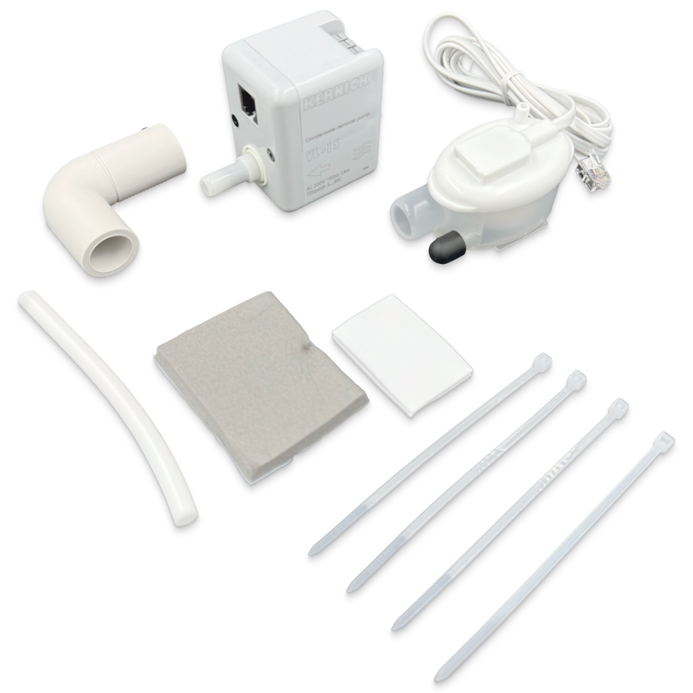 Kernick VL-15 – это очень компактный насос быстрой установки, который размещается под внутренним блоком кондиционера, а также имеет возможность боковой установки. Предназначен для отвода конденсата для кондиционеров мощностью до 30 кВт.