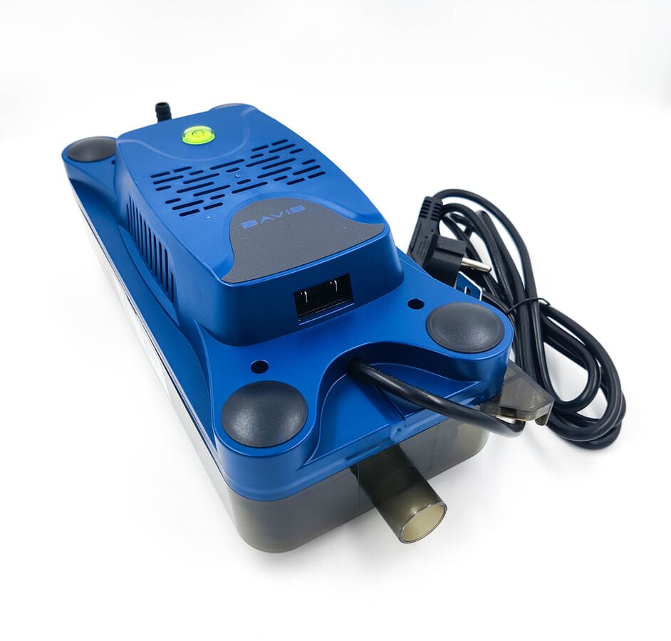 Для удобства установки модель имеет встроенный уровень. Индикация режимов работы облегчает осуществлять контроль за состоянием насоса. Аварийная схема насоса представлена парой нормально-замкнутых контактов NC-COM. Её можно подключить к цепи управления кондиционером и отключать оборудование в аварийных ситуациях, когда уровень воды в баке помпы превышает критическую отметку, что предотвращает утечки при поломке насоса или наличии проблем с дренажной магистралью.