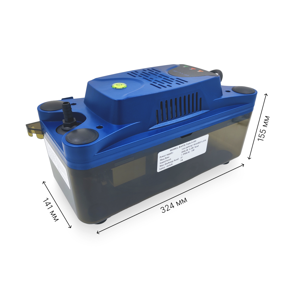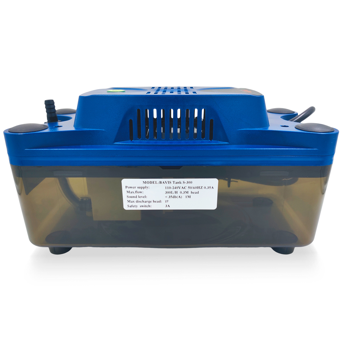 Помпа дренажная BAVIS Tank S-300 для отвода конденсата от нескольких единиц оборудования. Напольный или настенный вариант монтажа. 4 приемных отверстия. Объем: 2.3л. Уровень шума до 35 дБ(А). Производительность: 300 л/ч.