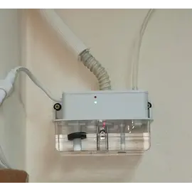 По мере наполнения этого резервуара помпа периодически включается для его опорожнения, о чем сигнализирует соответствующий индикатор на передней панели. В данном насосе имеется аварийная схема на основе пары нормально-замкнутых контактов, которую можно подключить к цепи управления кондиционером и отключать оборудование при превышении водой предельного аварийного уровня в резервуаре.