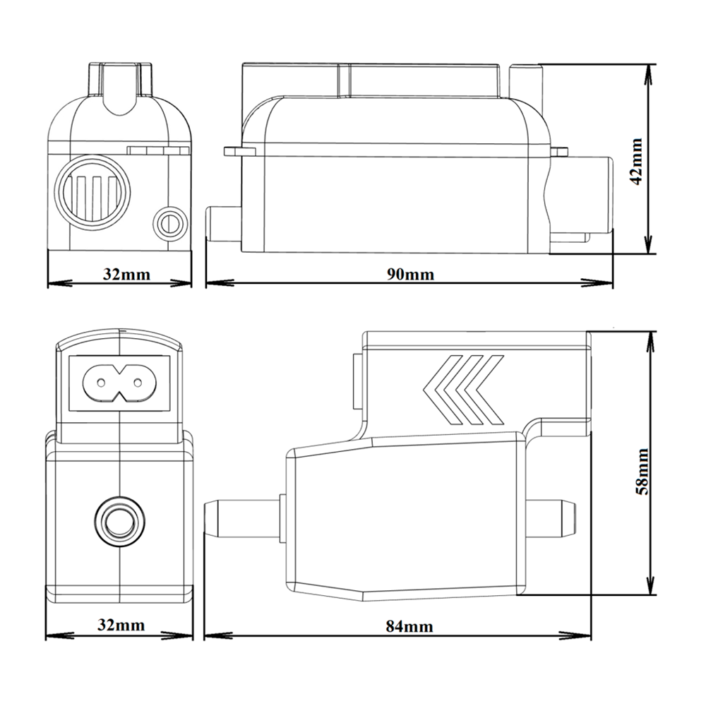 - Габариты насосного модуля (ДхШхВ): 84 х 32 х 58 мм;