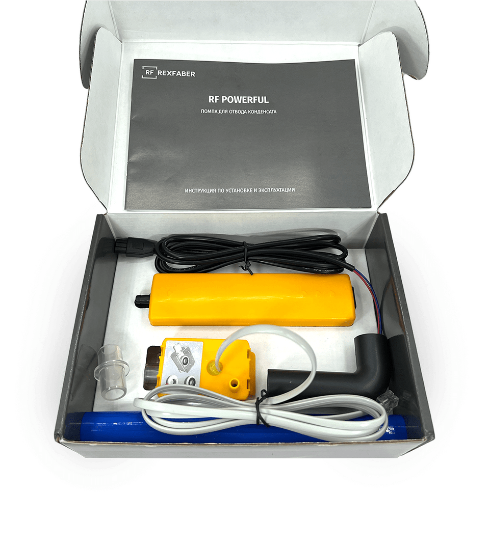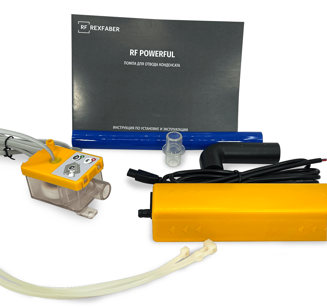Помпа для отвода конденсата в канализацию в системах кондиционирования. Отличительная особенность дренажного насоса RF-POWERFUL – это мембранный насос, который обеспечивает бесшумную работу помпы, высокую производительность, полное отсутствие вибрации.