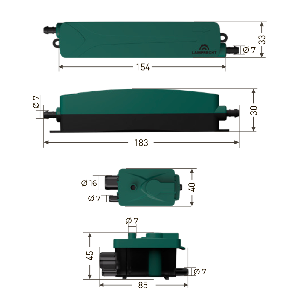 - Размеры насоса (Ш×В×Г): 183×30×33 мм;