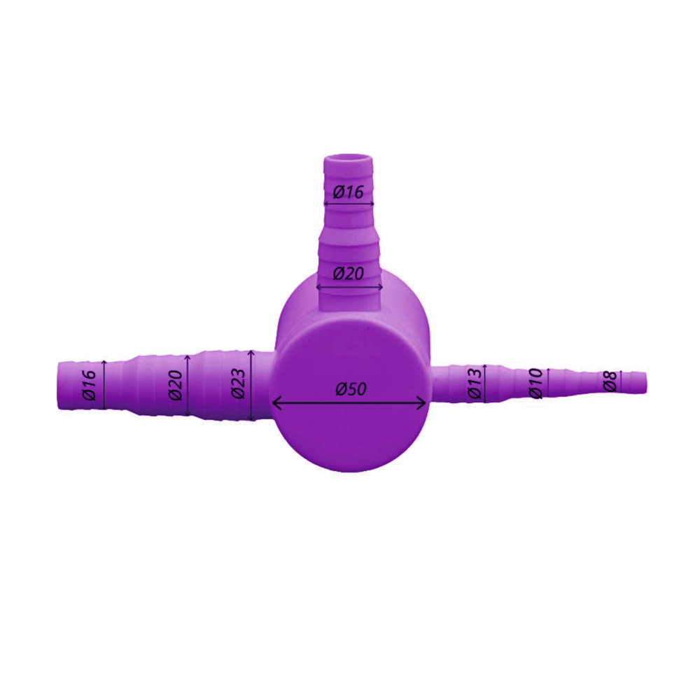 Дренажный полипропиленовый тройник PROFcool для подсоединения труб Ø8-Ø10-Ø13-Ø16-Ø20-Ø23-Ø50 размеров. Идеально подходит для дренажа кассетных и канальных кондиционеров. Отечественное производство.