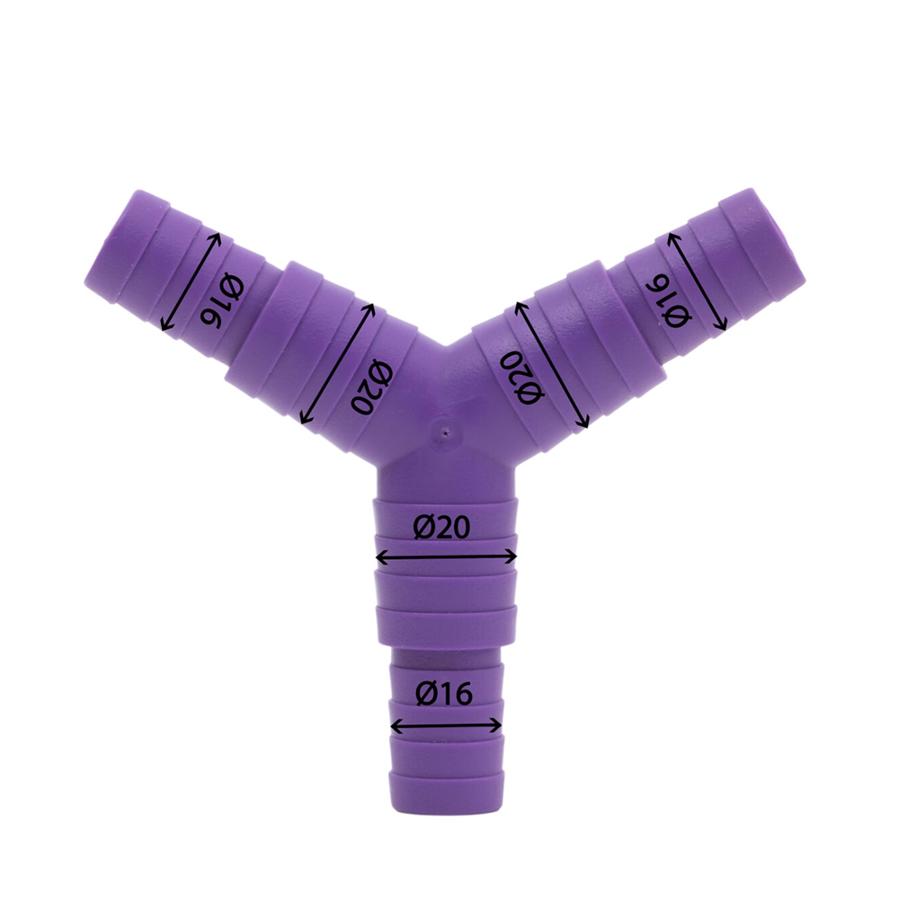 Дренажный тройник PROFcool Y 16-20/16-20/16-20 предназначен для входа двух гофрированных дренажных труб диаметром 16 мм или 20 мм. и выхода одной гофрированной дренажной трубы диаметром 16 мм или 20 мм.
