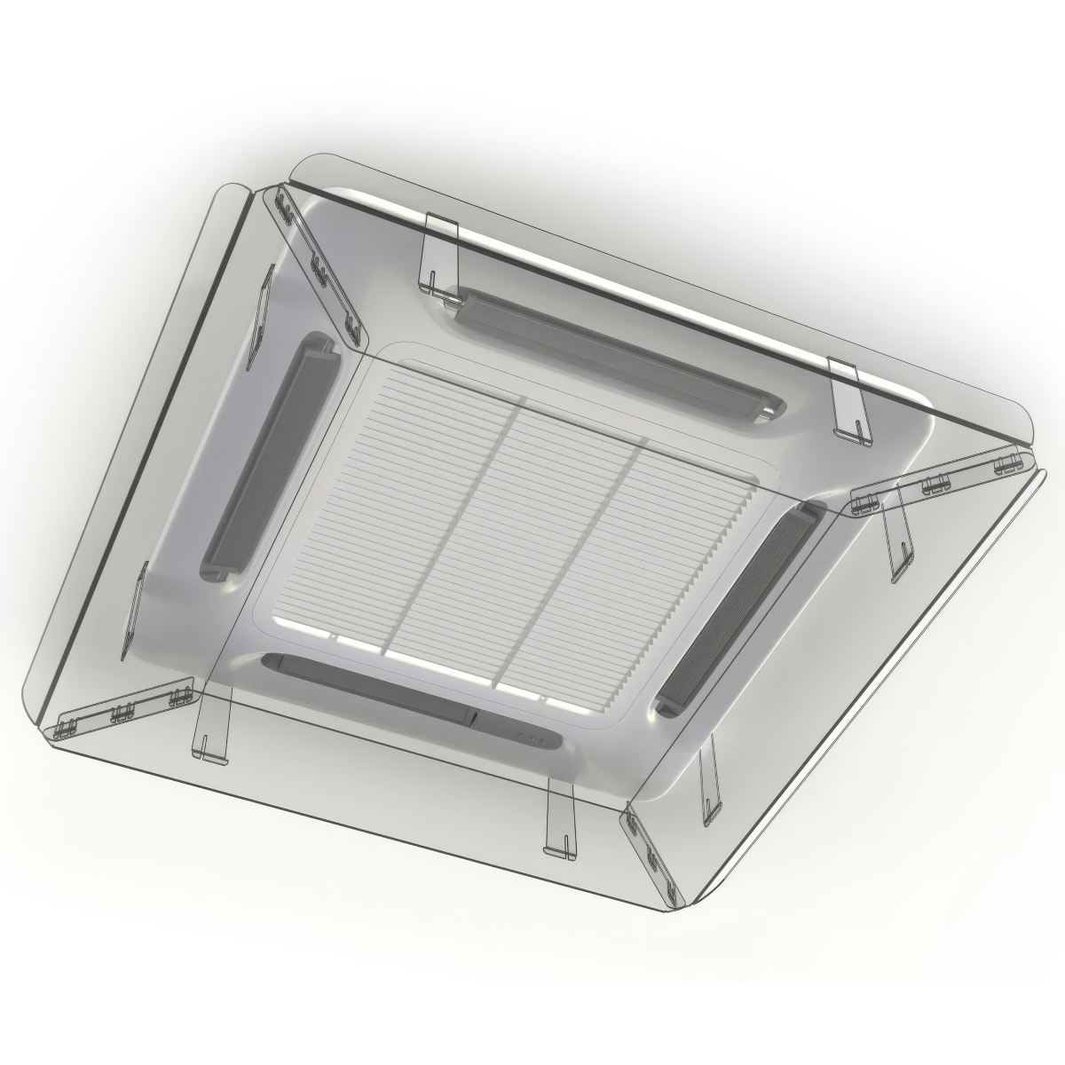 1. Равномерно распределяют холодный воздушный поток в помещении, создавая комфортную температуру. Без защитного экрана человек, находящийся рядом с кондиционером, будет мёрзнуть. Защитный экран для кассетного кондиционера исправит ситуацию.