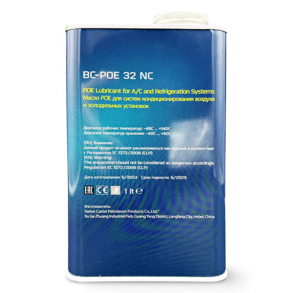 Синтетические масла Becool ВС-POE являются первыми маслами, выпускаемыми под торговой маркой Becool. Отличные смазывающие свойства, хорошая смешиваемость с хладагентами, а также их химическая и температурная стабильность обеспечивают защиту от окисления, коррозии и максимальную износоустойчивость трущихся пар холодильных компрессоров. Благодаря сбалансированному составу масел обеспечивается устойчивая работа компрессоров во всем интервале используемых температур, особенно это важно в условиях «зимнего» запуска холодильного компрессора при экстремально низких температурах окружающей среды. Холодильные масла ВС-POE изготовляются из синтетических эфиров и разработаны специально для работы с HFC (ГФУ) хладагентами: R134a, R404A, R507, R407C, R410A.