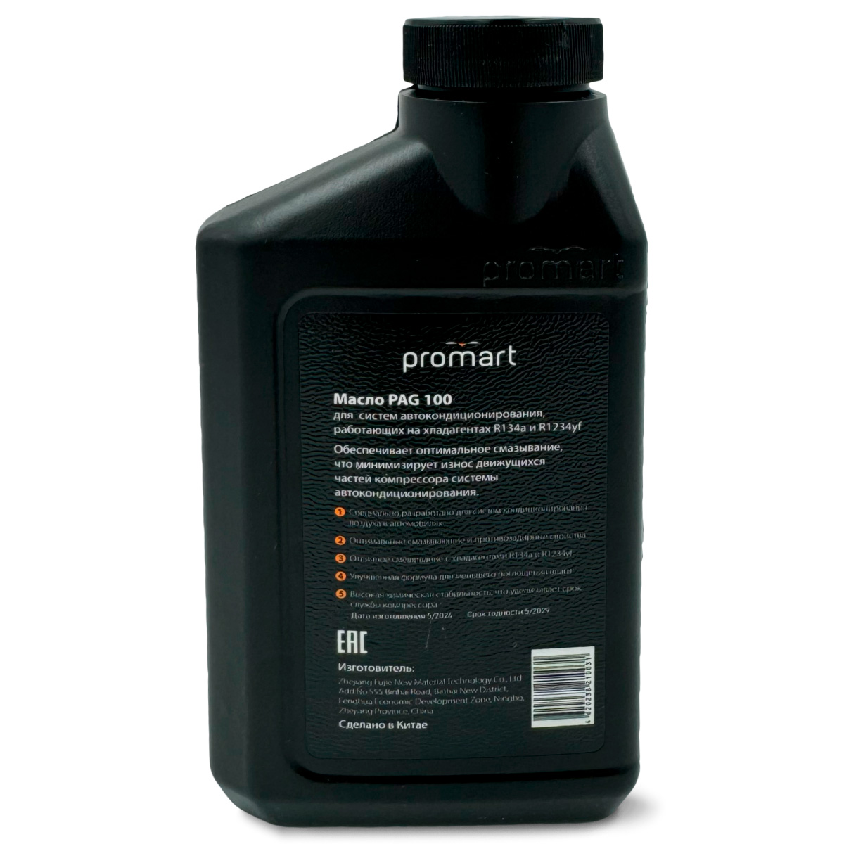 Масло синтетическое PROMART PAG 100 обеспечивает отличную смазку в автомобильных компрессорах, имеет превосходную, патентованную структуру, повышая производительность и срок службы компрессора.