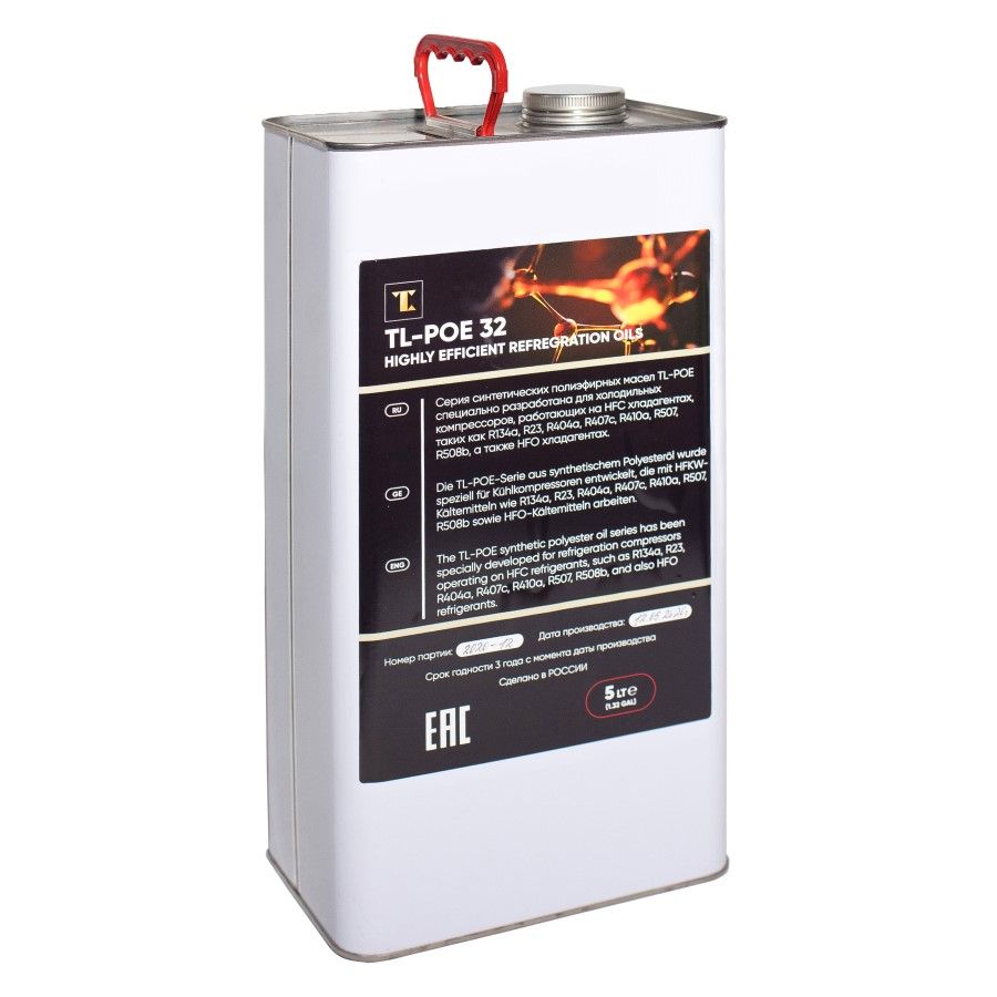 TL-POE 32 — инновационное синтетические полиэфирное холодильное масло с улучшенными свойствами для смазки компрессоров в холодильных установках с ГФУ/ГХФУ-хладагентами, таких как R-134a, R23, R404a, R407c, R410a, R507, R508b, а так же с современными HFO-хладагентами R1234yf и R1234ze.