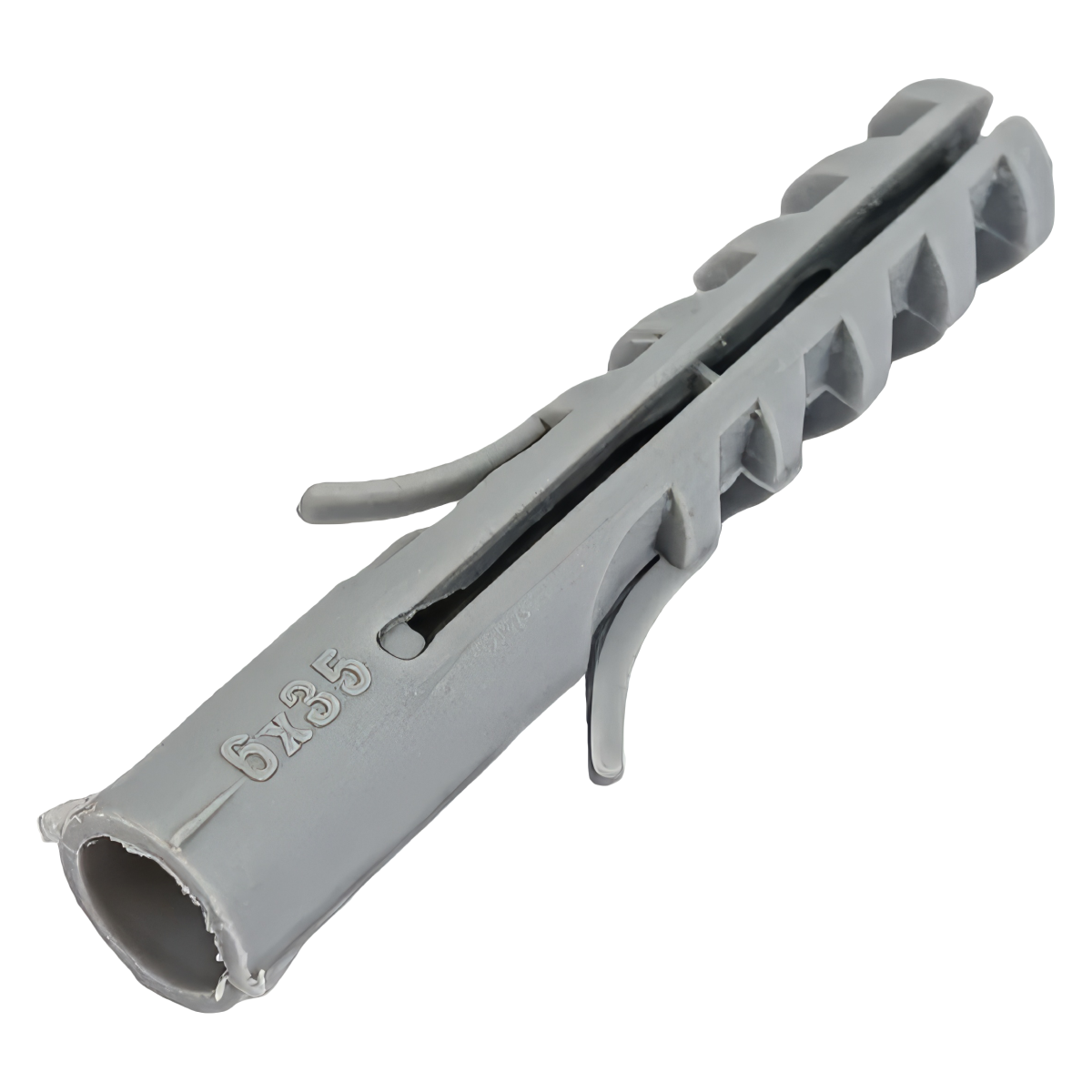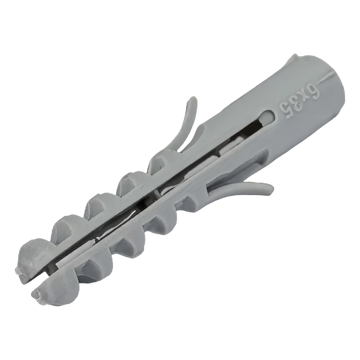 Дюбель распорный (тип S) предназначен для всех видов материалов из бетона и кирпича. Наличие блокировочных язычков предотвращает проворачивание дюбеля в отверстии, а зубцы прочно закрепляют дюбель за счёт трения в полнотелых строительных материалах. Передняя половина дюбеля имеет сплошное сечение, что ещё более усиливает распорное давление в глубине отверстия при завинчивании шурупа.