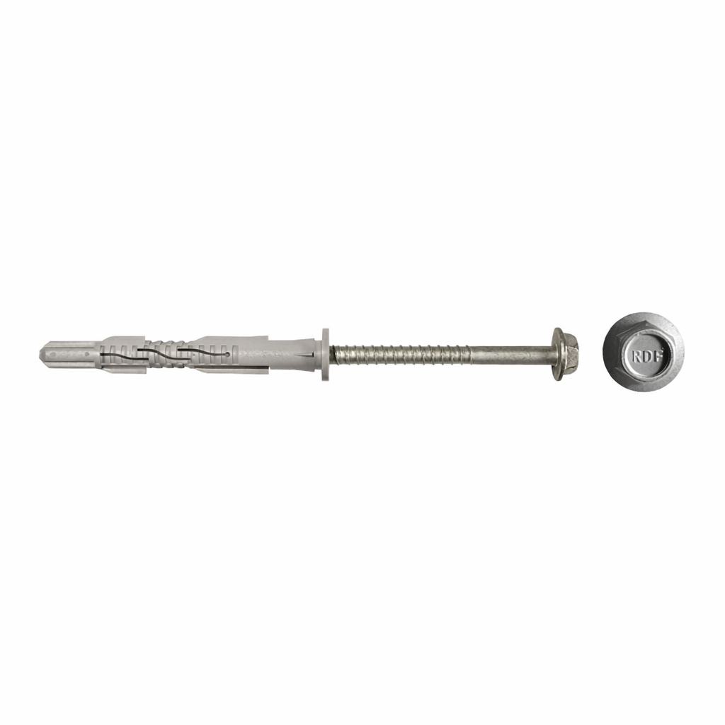 Дюбель идет в комплекте с шестигранным шурупом с прессшайбой (RDF). Шуруп из горячооцинкованной стали прочностью 6.8 по DIN EN 20898 и толщиной защитного слоя не менее 40 мкм. Требуется ключ на 13.