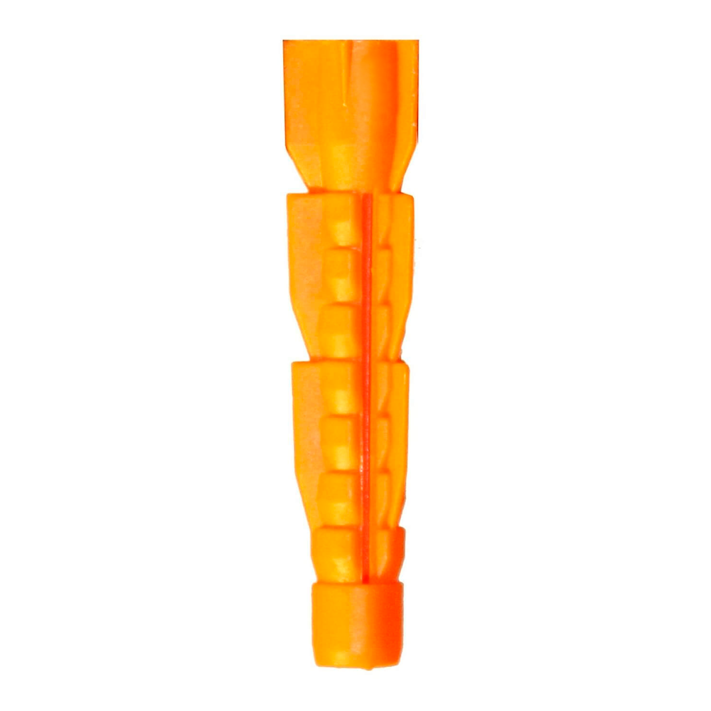 Универсальный дюбель из полипропилена с повышенной эластичностью предназначен для использования его как в сплошном основании, так и в полостной кладке (полые бетонные блоки, кирпич с отверстиями и т.д.). В плотной кладке дюбель ведет себя как обычный трёхлепестковый дюбель и обладает всеми его преимуществами. При попадании в полость дюбель наворачивается на шуруп и завязывается в плотный узел, который надёжно крепит шуруп в стене.