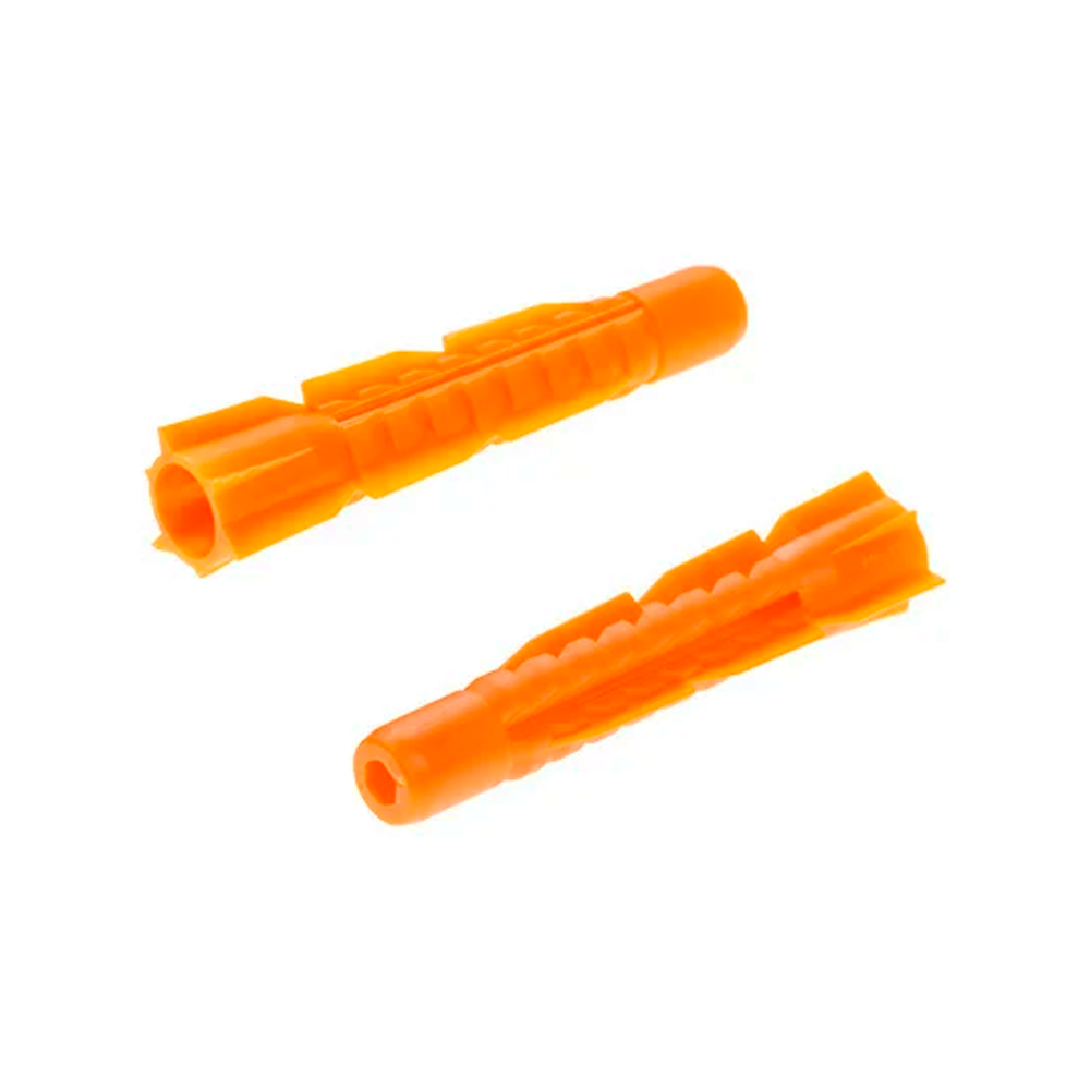 Универсальный дюбель из полипропилена с повышенной эластичностью предназначен для использования его как в сплошном основании, так и в полостной кладке (полые бетонные блоки, кирпич с отверстиями и т.д.). В плотной кладке дюбель ведет себя как обычный трёхлепестковый дюбель и обладает всеми его преимуществами. При попадании в полость дюбель наворачивается на шуруп и завязывается в плотный узел, который надёжно крепит шуруп в стене.