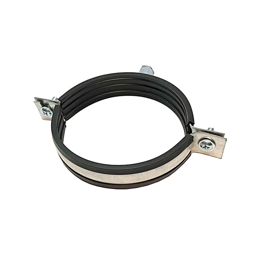 Хомут для воздуховода с резиновой прокладкой является универсальным крепежным элементом, предназначенным для надежной горизонтальной фиксации или подвеса воздухораспределителей, воздуховодов с круглым сечением, а также кабелей, жгутов, труб различного вида и предназначения к стенам, потолку, полу.